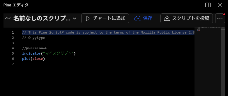 エディタ欄にコードをすべて張り付けて「チャートに追加」を押してください。